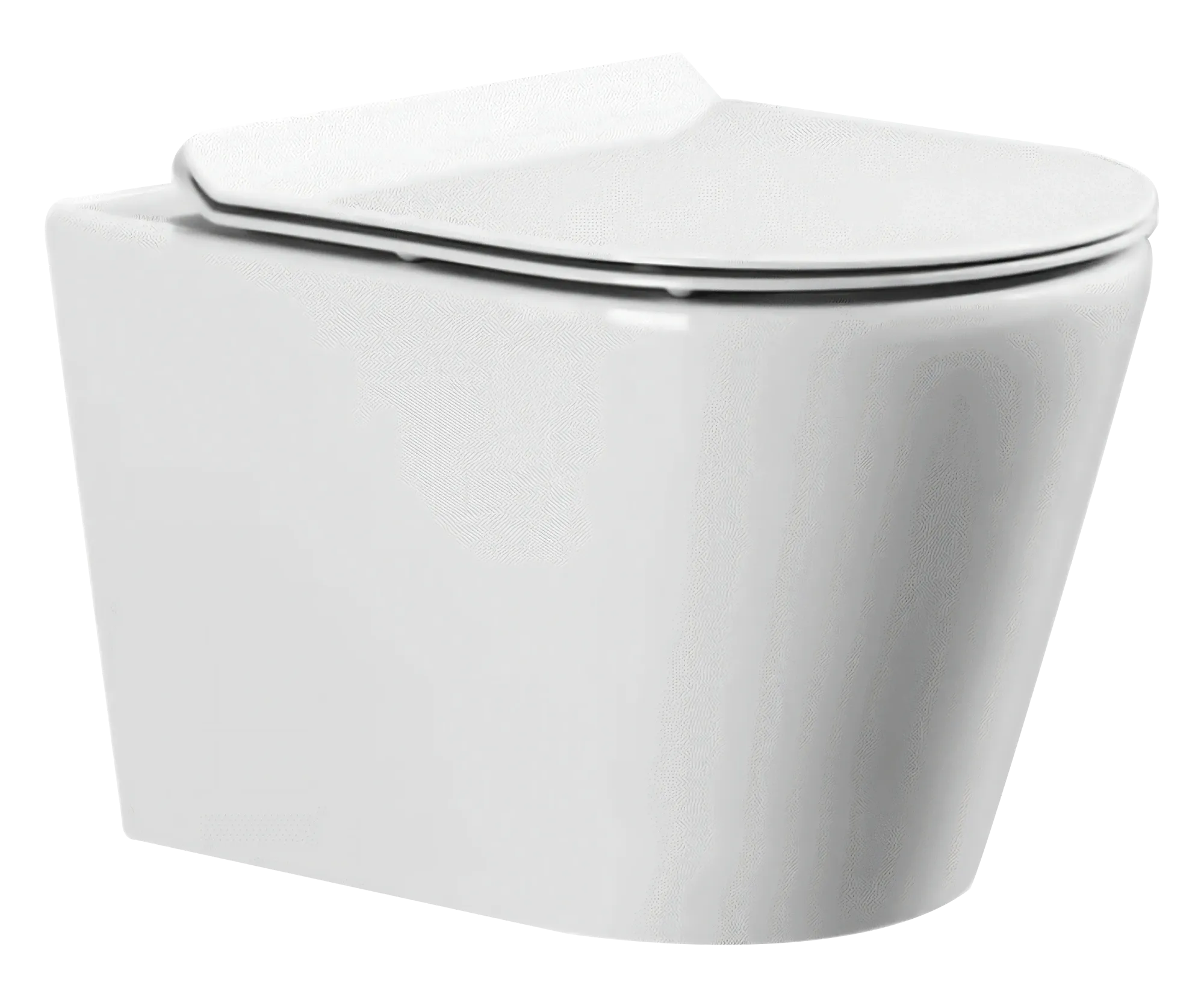 Λεκάνη κρεμαστή rimless με κάλυμμα DUROPLAST soft close αφαιρούμενο 490x340x360mm & σετ στήριξης. Πισωστόμια.