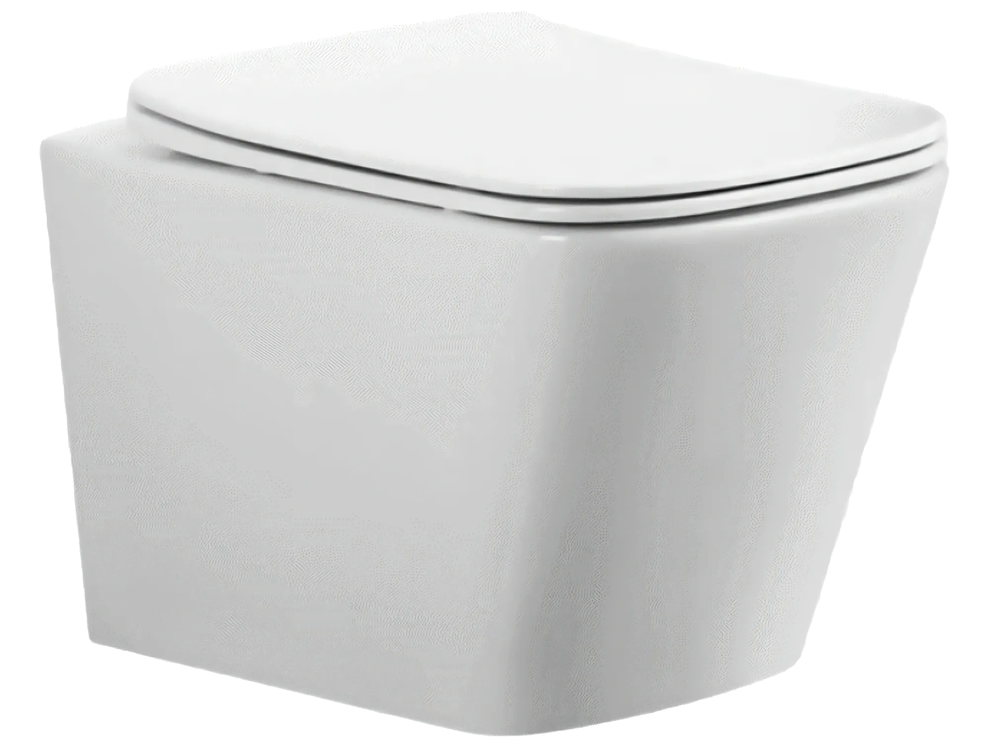Λεκάνη κρεμαστή rimless με κάλυμμα DUROPLAST soft close αφαιρούμενο 490x340x360mm & σετ στήριξης. Πισωστόμια.